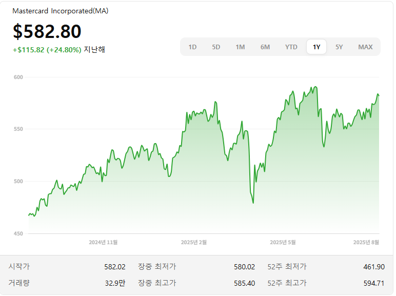 5) Mastercard (NYSE: MA) — FIUSD·PYUSD·USDC 등 다수 코인 수용, ‘수용성’ 승부