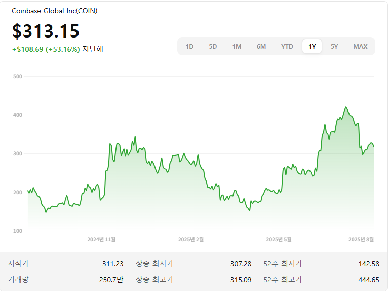 2) Coinbase (NASDAQ: COIN) — USDC 경제권 레버리지, 거래소를 넘어 인프라 기업화