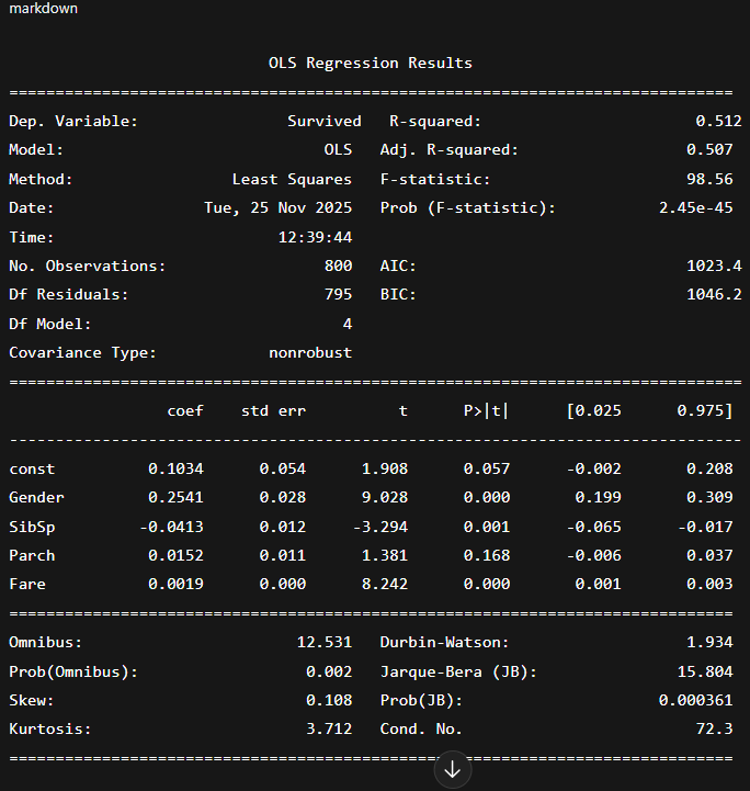 아래는 Statsmodels 의 model.summary()로 자주 나오는 형태를 기반으로 작성된 예시입니다.